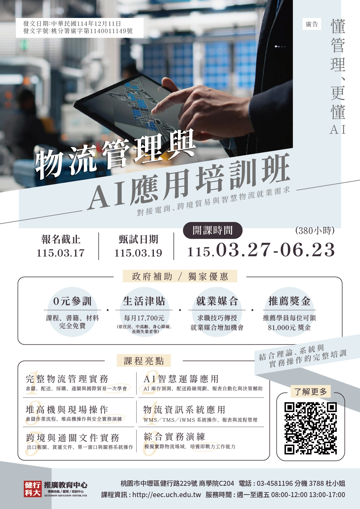 3/4(三)下午14:00另有課程說明會,由資深博士班畢業林宏勳講師,帶您深入了解數位辦公與 AI 應用 點我報名📣115年政府免費職前訓練【物流管理與AI應用培訓班】