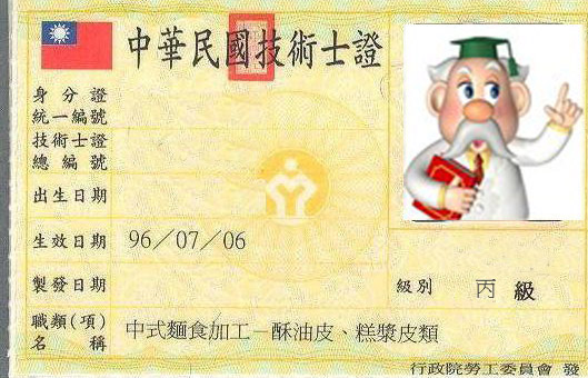 丙級中式麵食加工技術士工作範圍:從事中式麵食製作等有關的基本知識與一般技能,應具有認識一般性的中式麵食或特殊傳統技藝麵食等之原料特性、配方,並配合營養、衛生之常識,且能適當的製作、包裝及貯存中式麵食。
